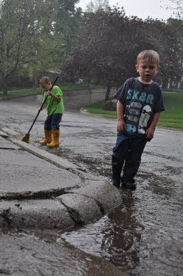 Kohen and Ashton Playing in the Warm Spring Rain